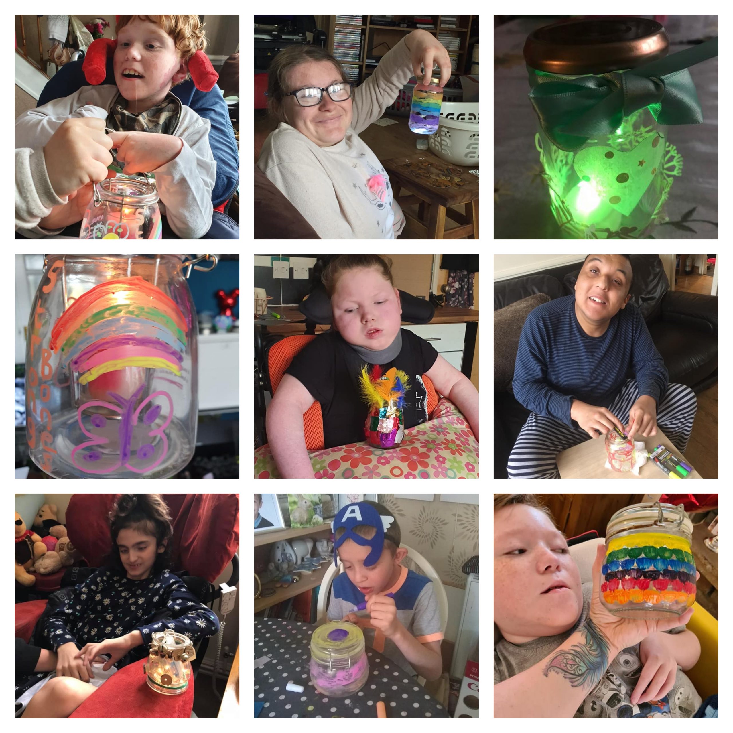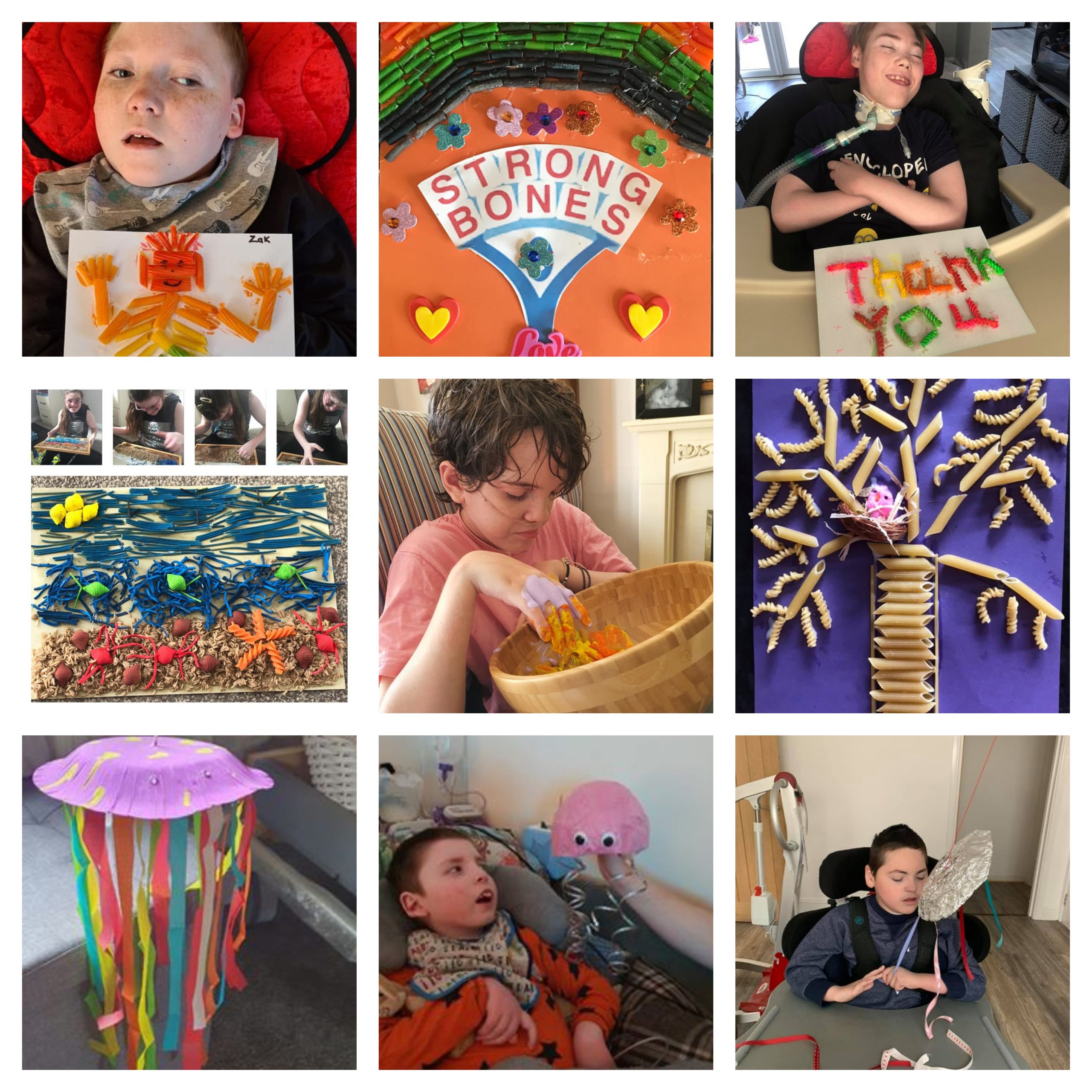 Our last three daily challenges have been pasta art, sensory jellyfish and lanterns. The children made some lovely pictures out of pasta. Sensory jelly fish so far seems to be the children’s favourite challenge we have set. The children also made lanterns which they painted and put their tea light candles inside for a more sensory effect. Below is a sample of some of their work.