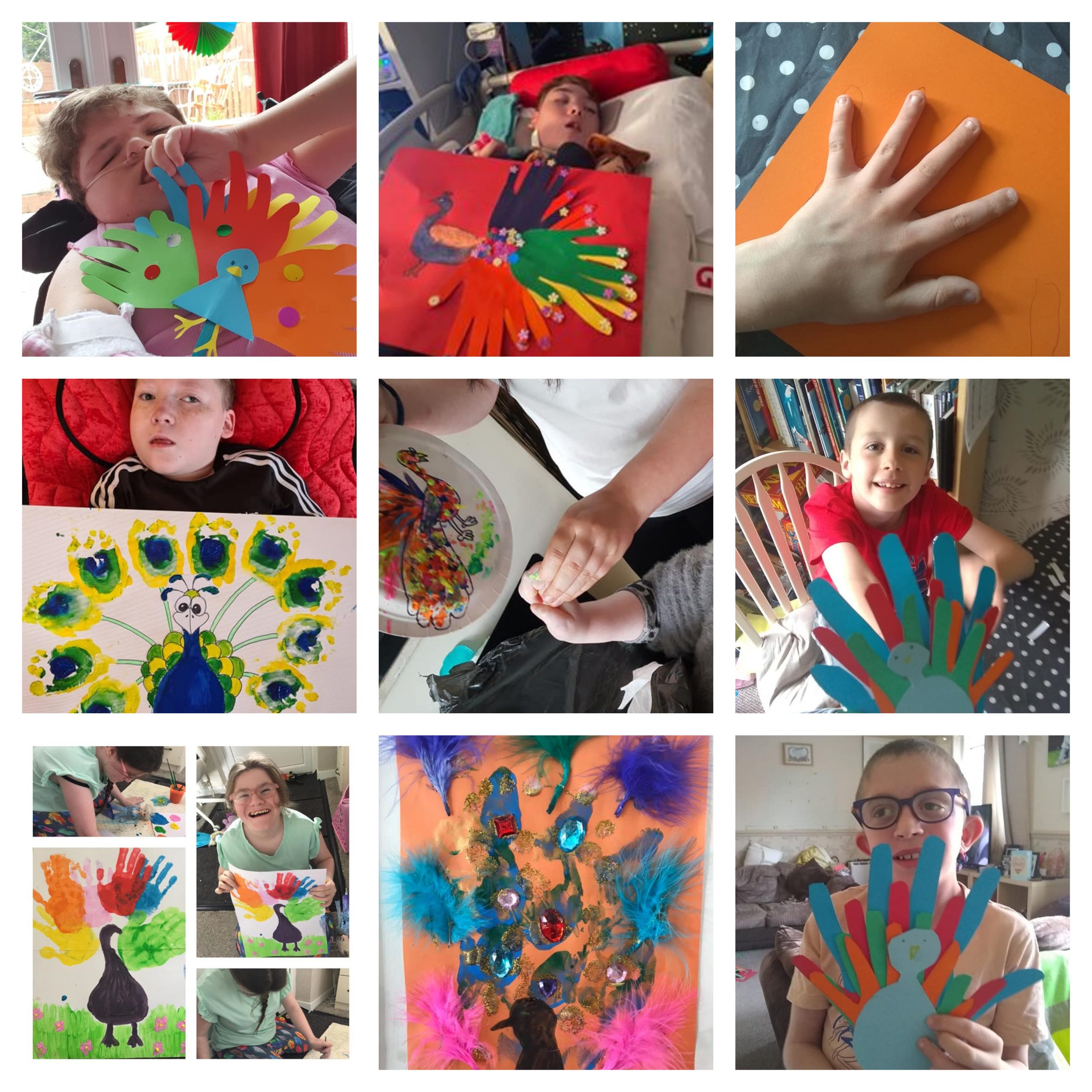 Our last two days challenges have been peacock hand art and disc light catchers. We had great feedback from the families on the disc light catchers, as when the light hits them it has a lovely effect, which makes them really sensory.