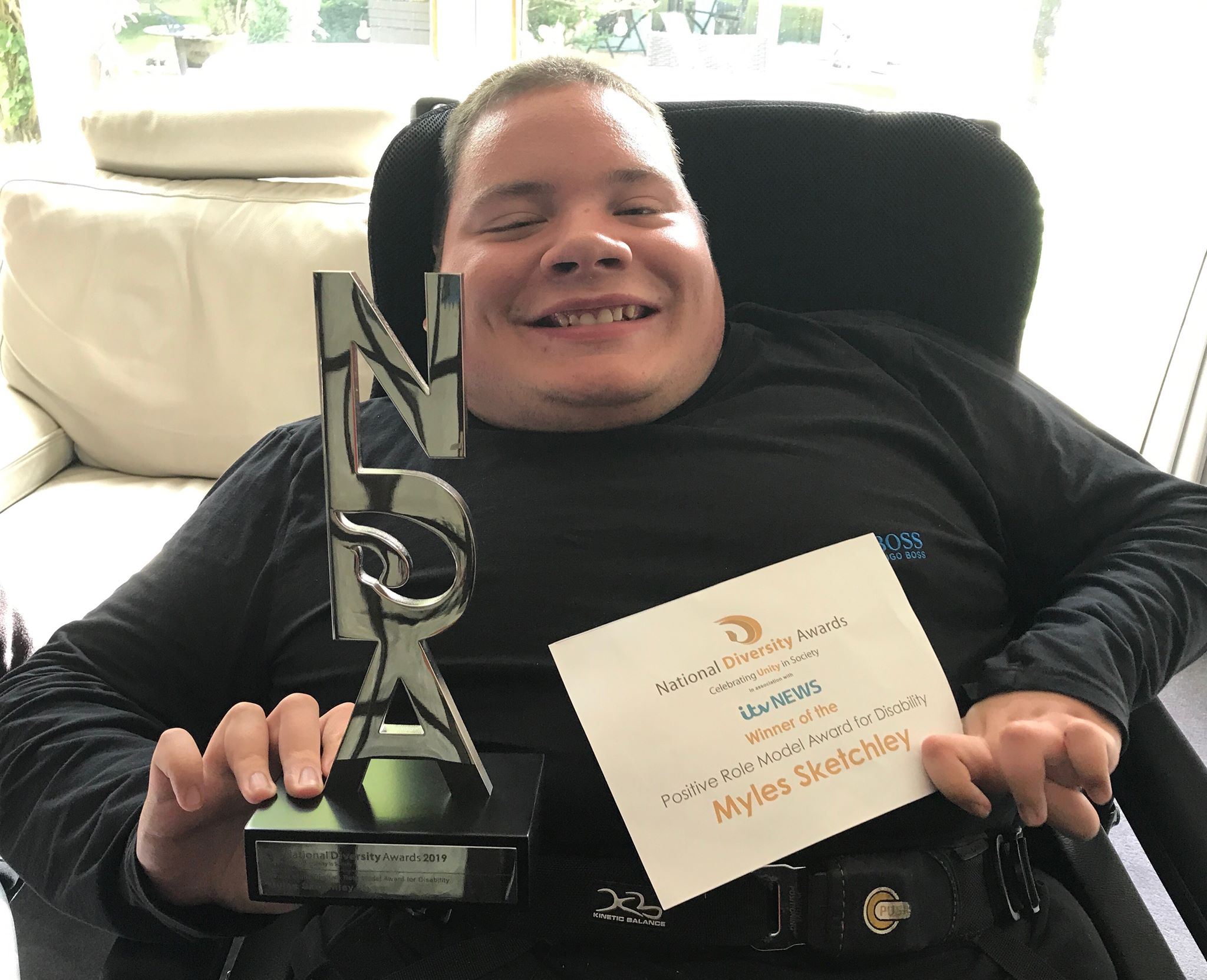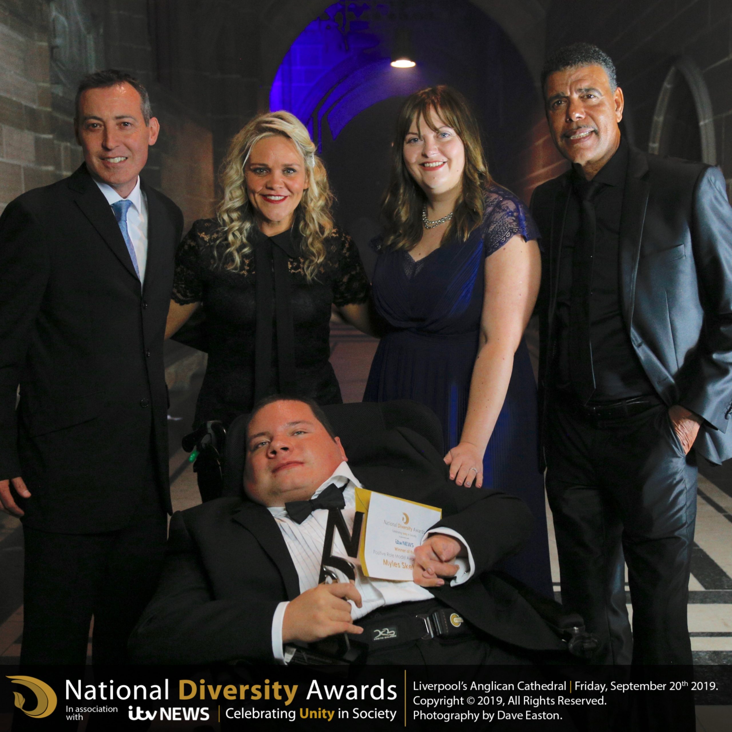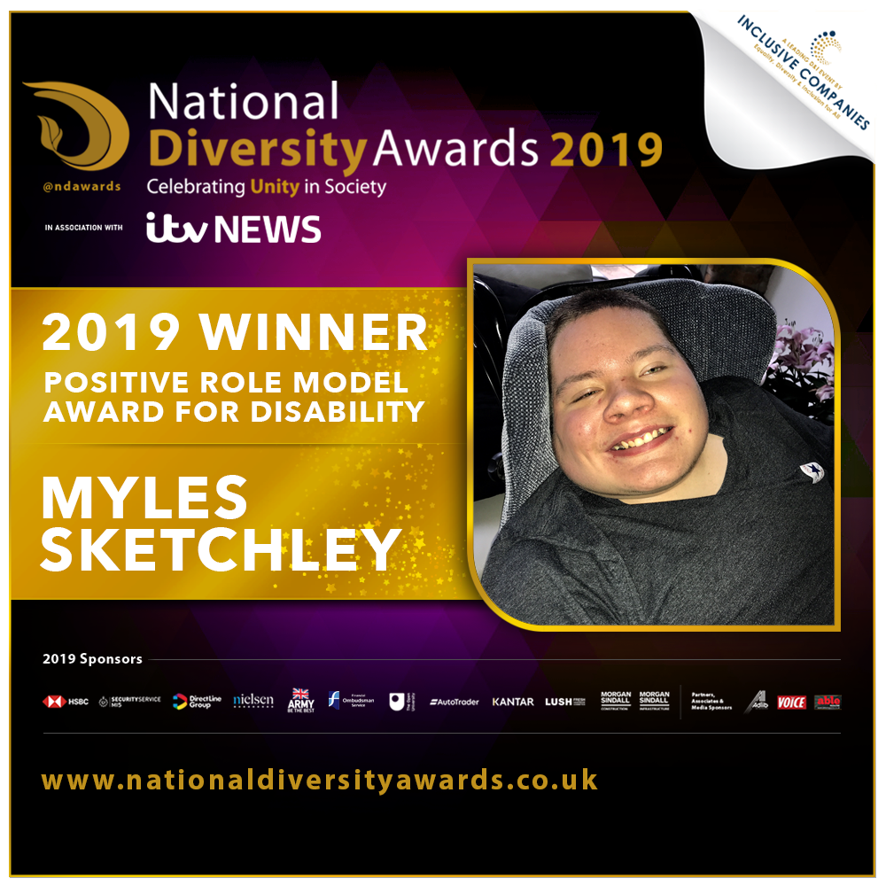 We are extremely proud to announce that our Youth Ambassador and intern Myles Sketchley won a National Diversity ward for positive role model in disability after being shortlisted from 28,000 nominees. Community organisations and role models from across the UK attended Liverpool Anglican Cathedral on 20th September to witness the countries 2019 winners being crowned the best of British diversity broadcast live ITV.