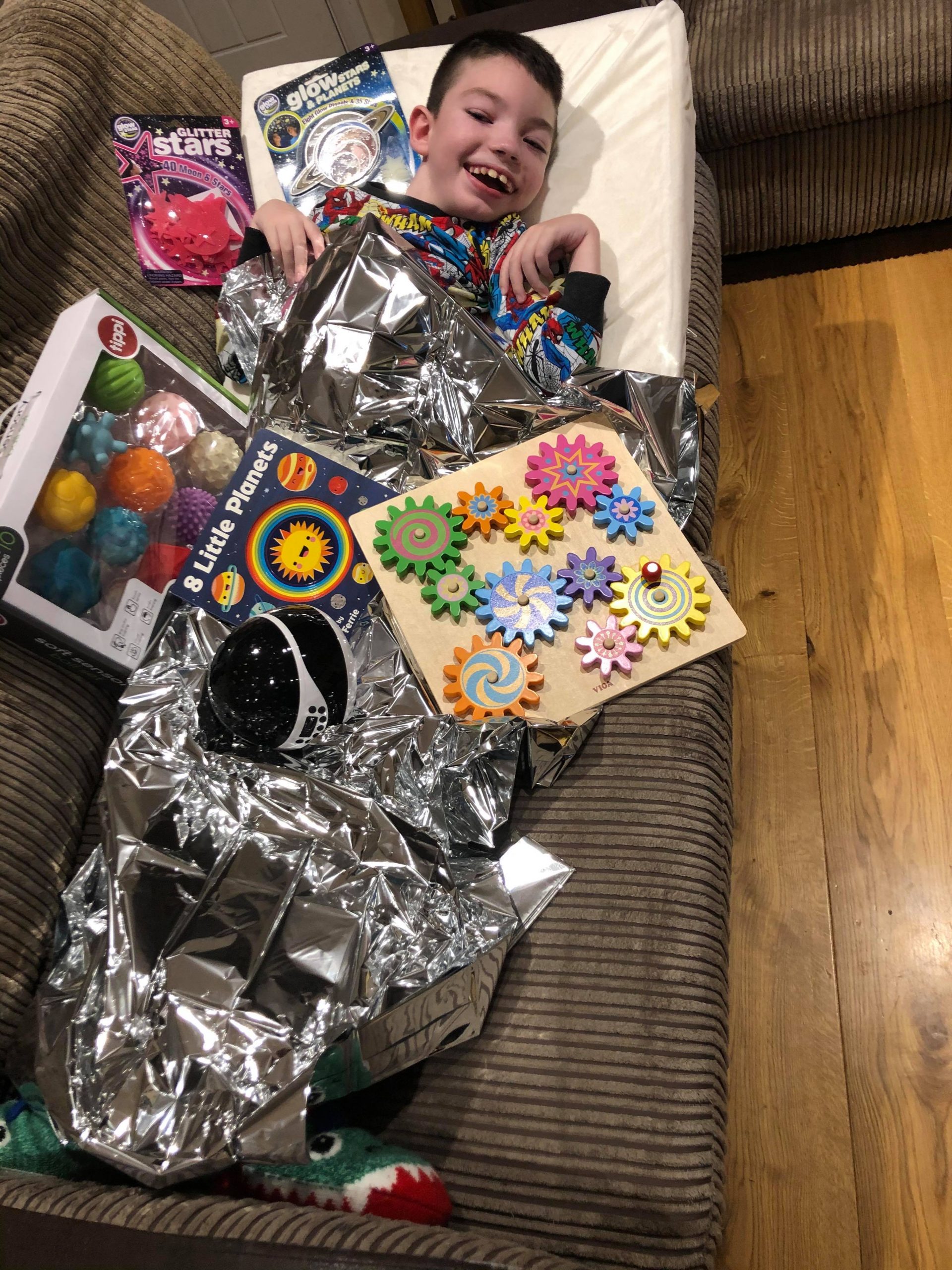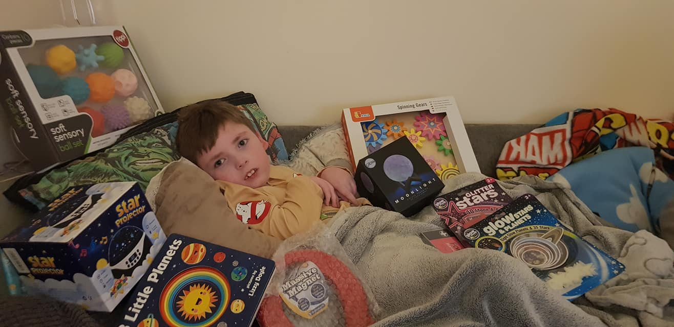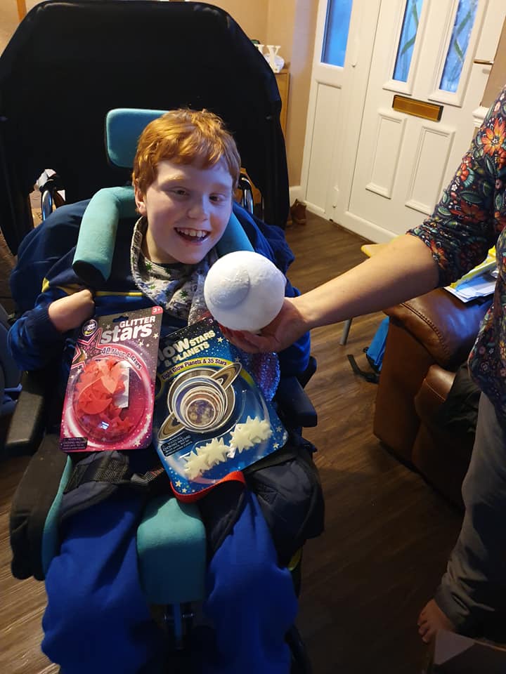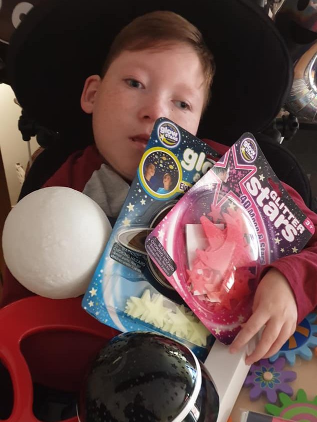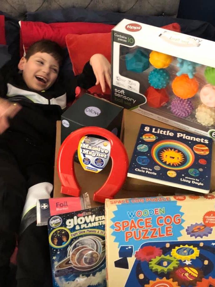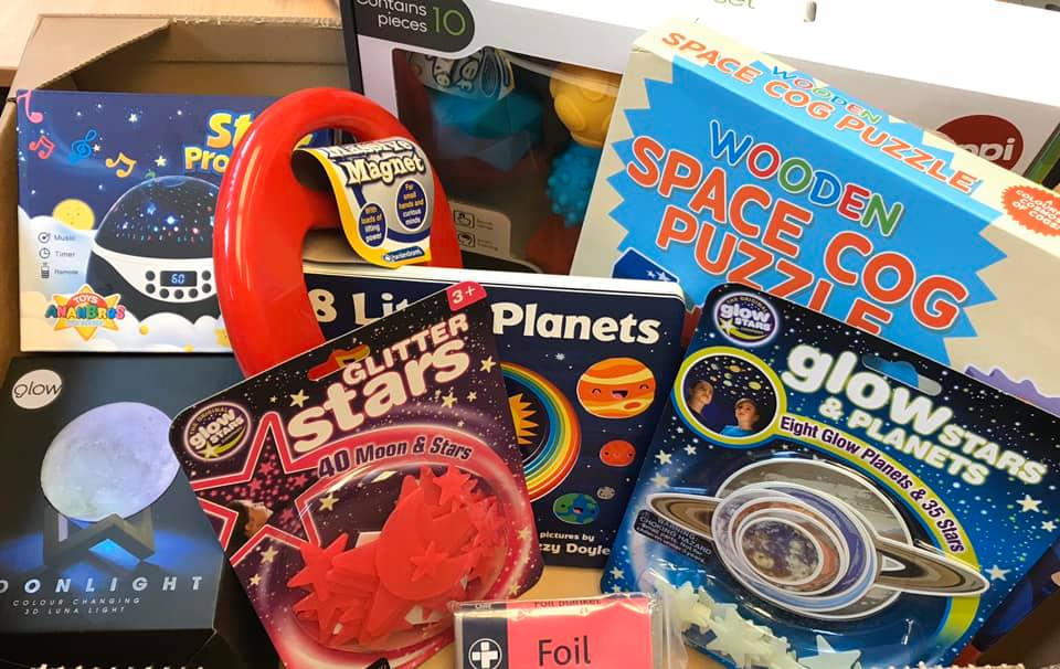 We are extremely happy to have funded 120 sensory space packs, each pack contained a star light projector, a box of 10 sensory planet balls to hold, a wooden space cog puzzle, a moon night light, a giant magnet, 8 little planets fun learning book and a foil blanket along with glitter glow stars and glow planets to decorate. The packs were a huge success for the children and we have had great feedback from parents/carers.