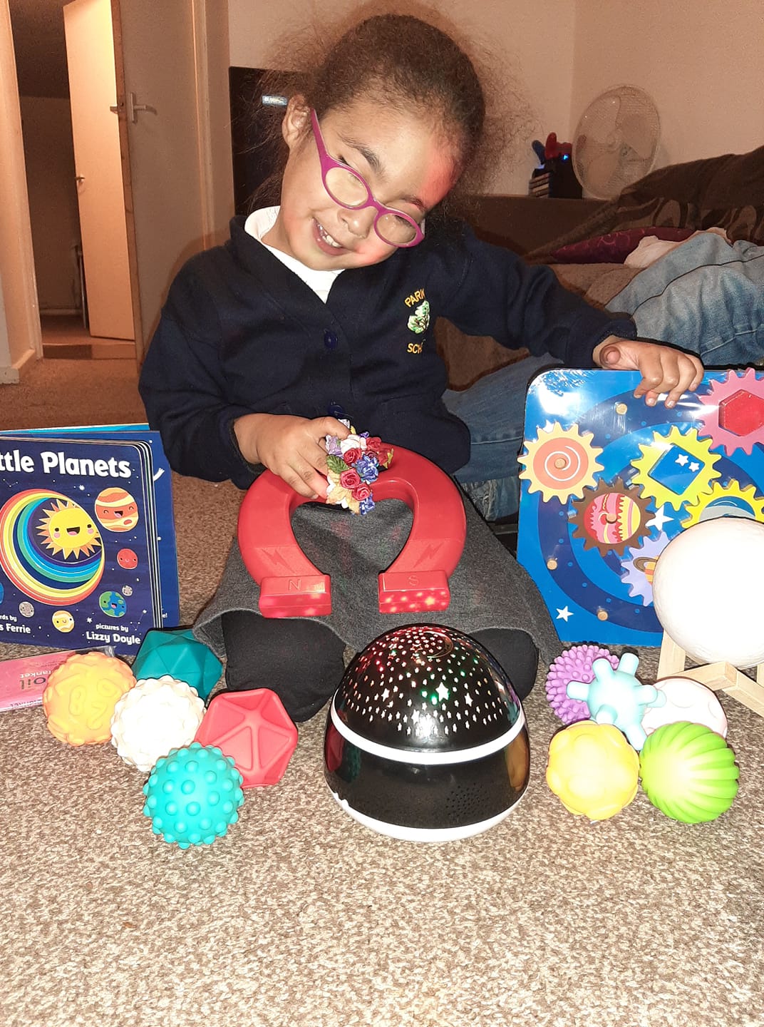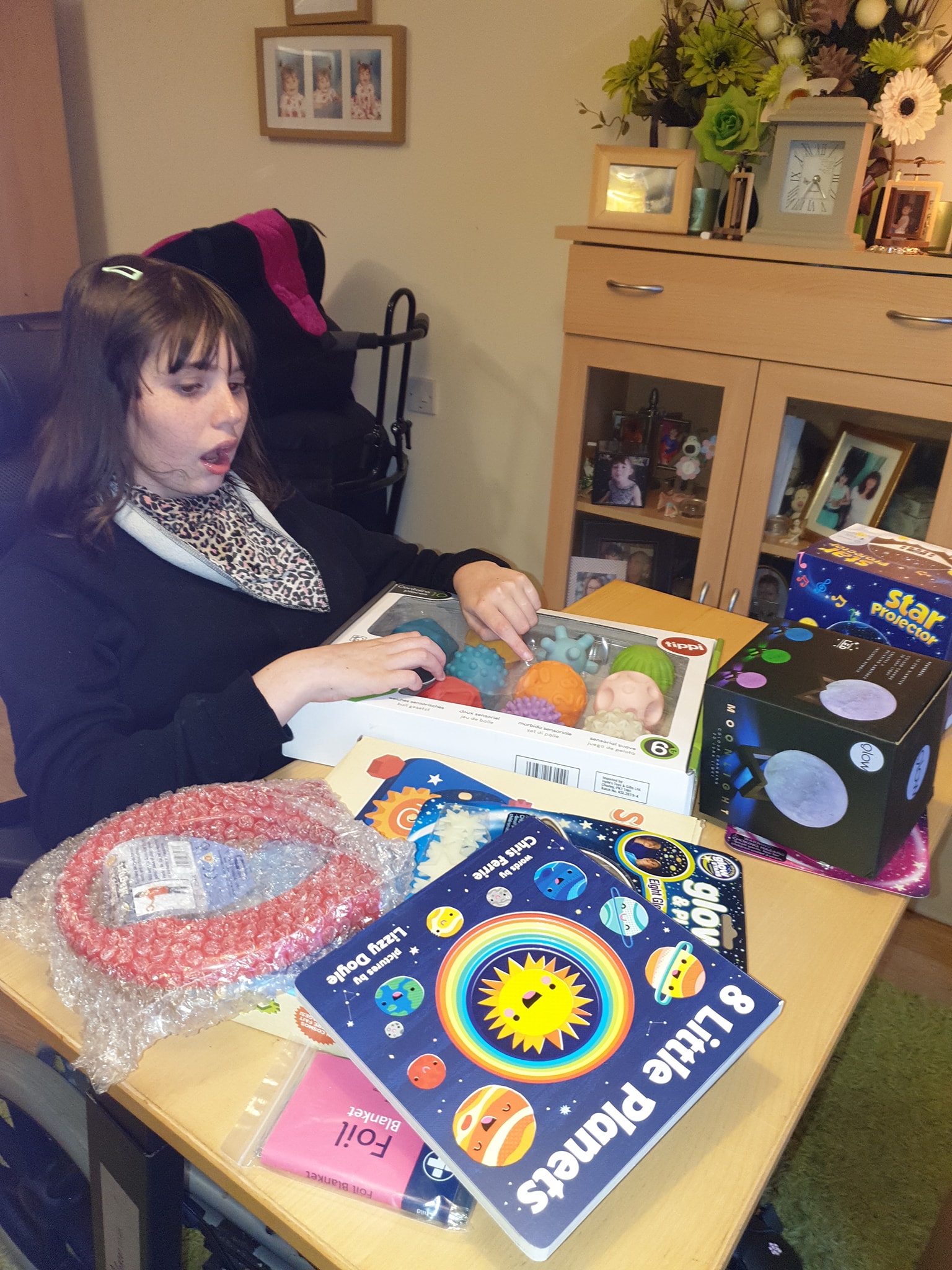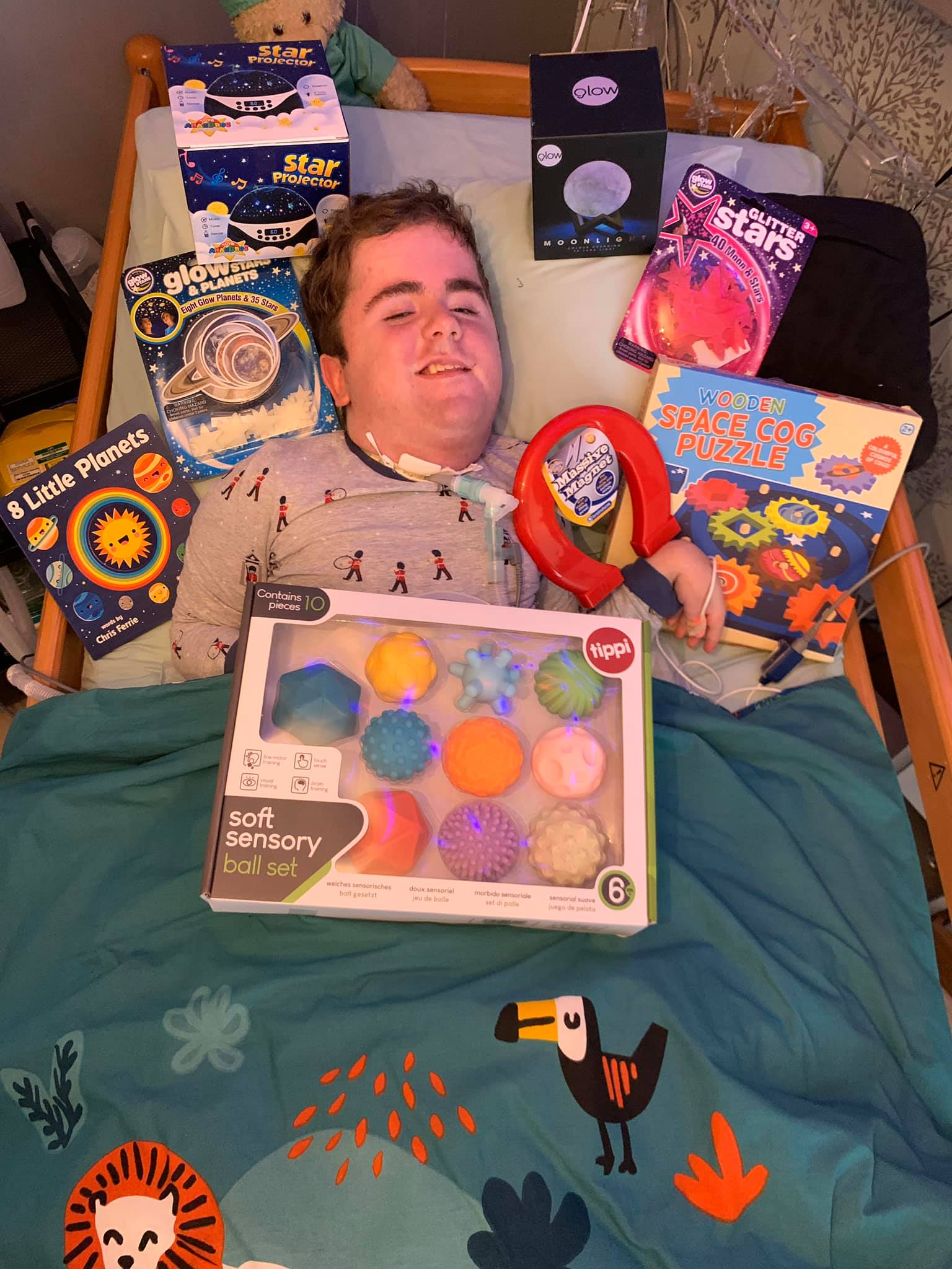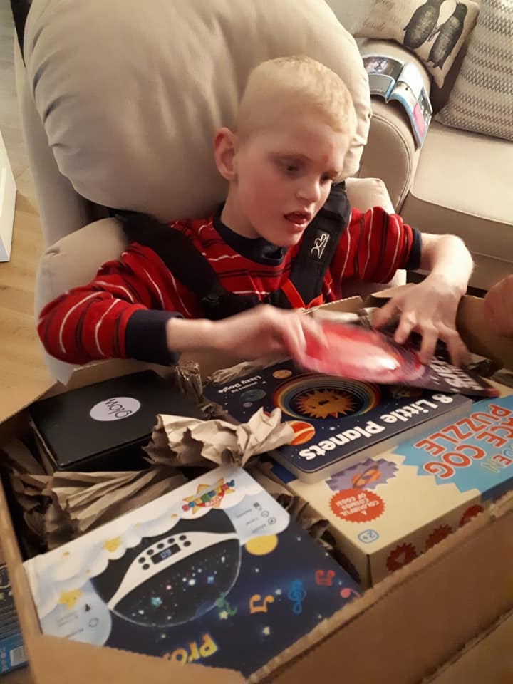 We are extremely happy to have funded 120 sensory space packs, each pack contained a star light projector, a box of 10 sensory planet balls to hold, a wooden space cog puzzle, a moon night light, a giant magnet, 8 little planets fun learning book and a foil blanket along with glitter glow stars and glow planets to decorate. The packs were a huge success for the children and we have had great feedback from parents/carers.
